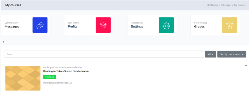1. Silahkan masuk ke dalam LMS dan masuk ke course melalui navbar my course > pilih course yang akan dikelola