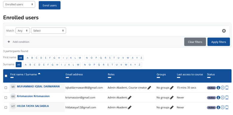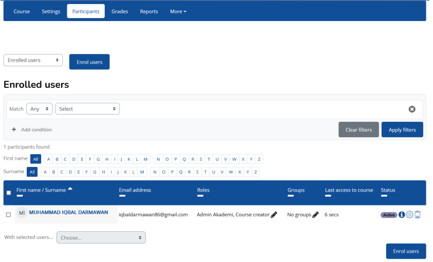 4. Silahkan klik Enrol users