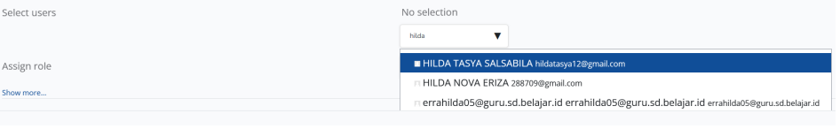 6. Silahkan lakukan select user dengan memasukkan email admin akademi/admin pelatihan