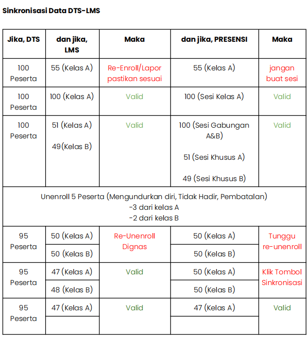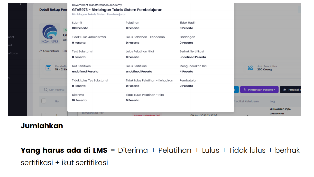 Kemudian pastikan jumlah peserta DTS = Jumlah peserta di LMS