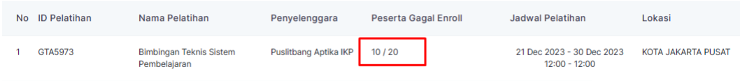 gagal enroll dari 20 peserta yang seharusnya masuk ke lms