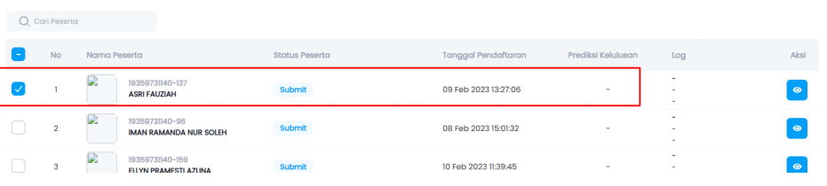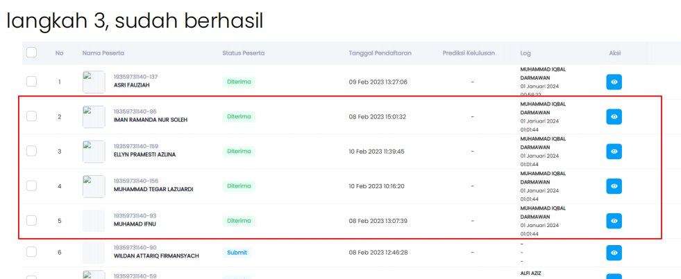 lakukan hal diatas lagi hingga data peserta tersebut hilang dari list gagal