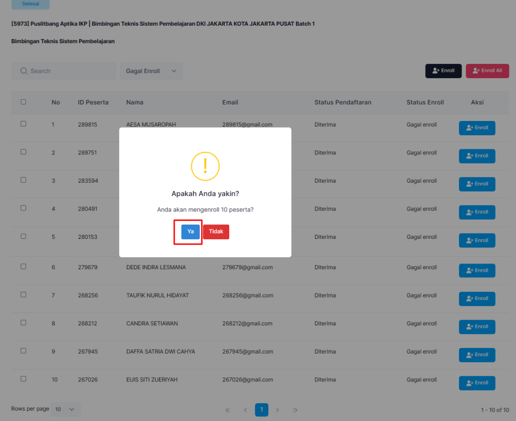 8. Cek jumlah peserta yang akan di enroll, lalu Klik Ya