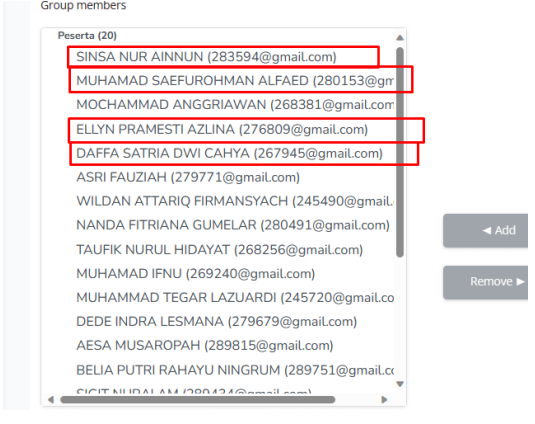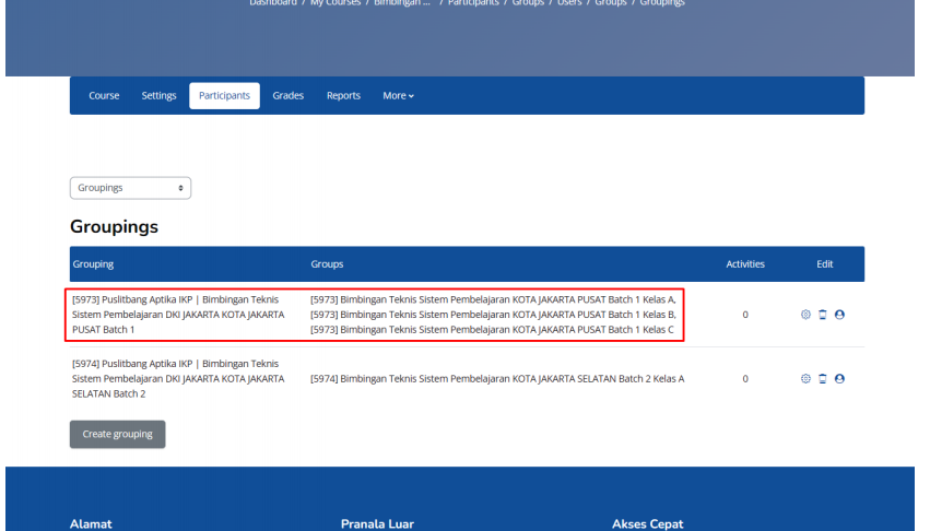 2. Cek pada participant > grouping. Pastikan pelatihan dan kelas A sudah