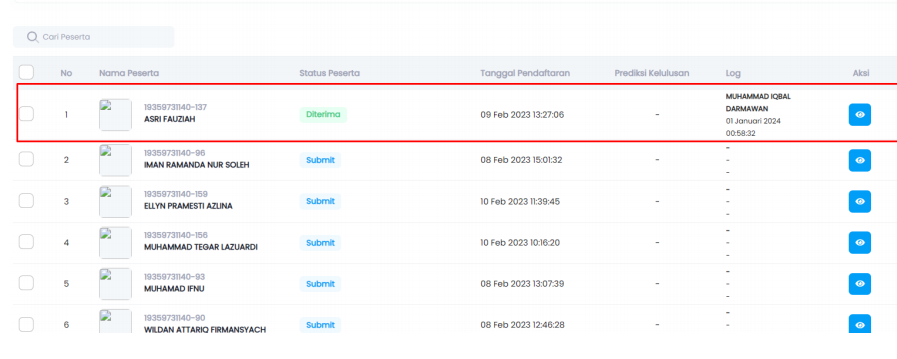 10. Apabila sudah tidak ada, silahkan cek lms 10 peserta sudah berhasil masuk