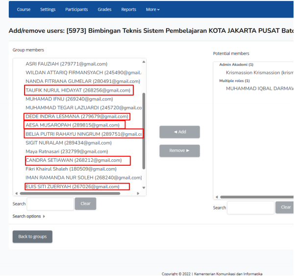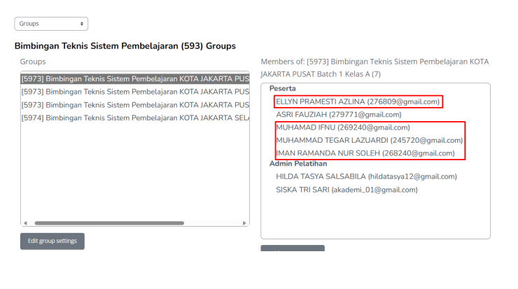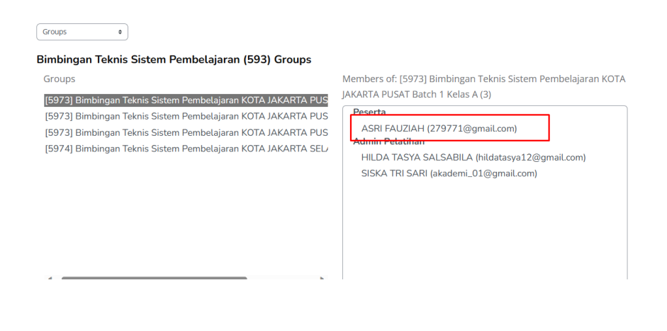12. Cek enrollment peserta pada grup/kelas di LMS. Cek Participant > Group >