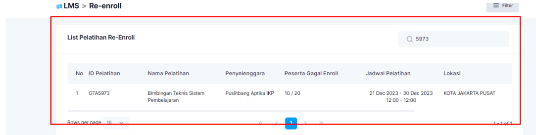 3. Cari pelatihan anda by id atau nama pelatihan pada pencarian list