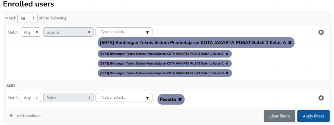 Gunakan filter grup (select semua grup) dan role (peserta) pada menu