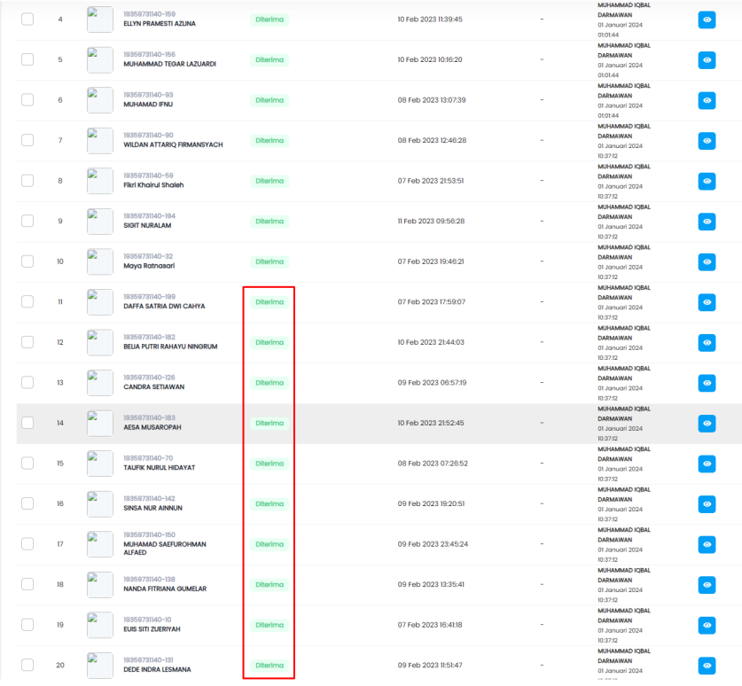 rekap pendaftaran dari diterima ke diterima lagi untuk menjalankan fungsi