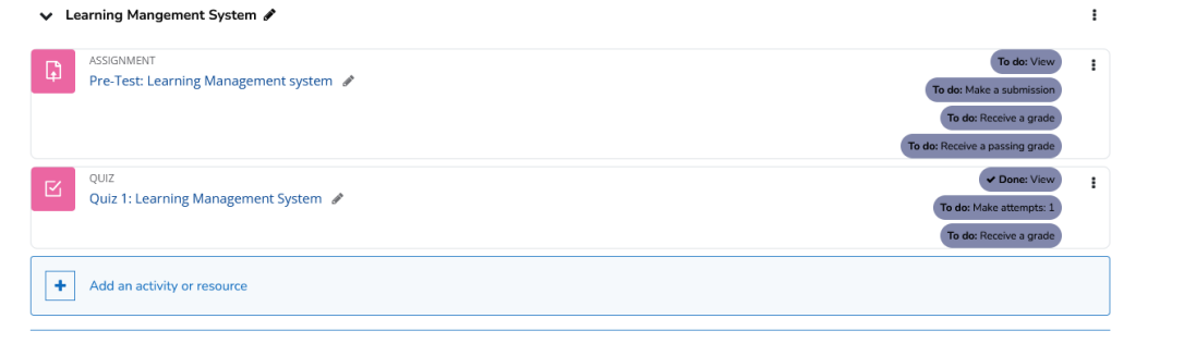 18. Akademi dapat melakukan tracking terhadap aktivitas peserta secara otomatis tanpa dapat dimanipulasi dengan mengatur activity completion pada setiap assignment, quiz, dan file