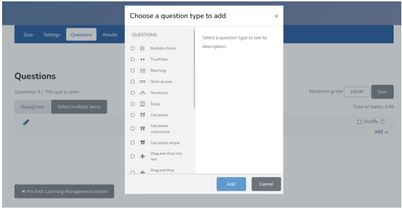 26. Pilih tipe soal, contoh: multiple choice. Klik lalu add