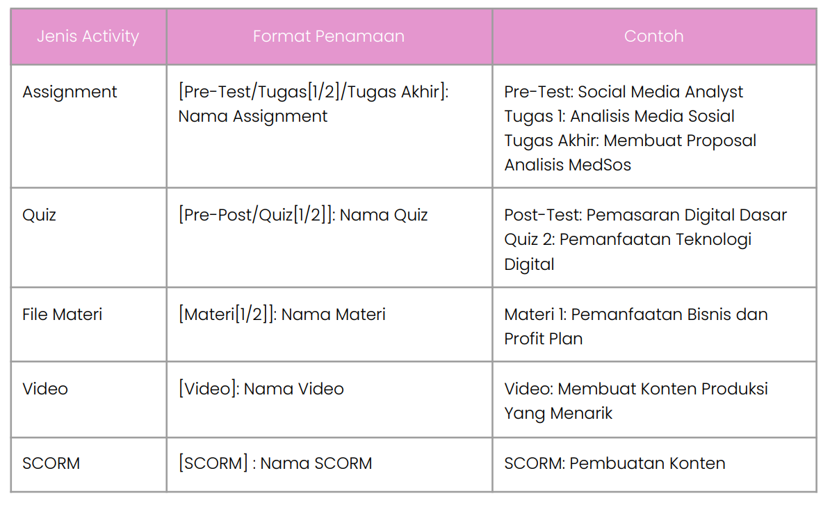 3. Perlu diketahui, bahwa pada Moodle terdapat 2 hal utama yang dapat diinput oleh admin pengelola LMS