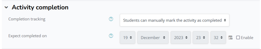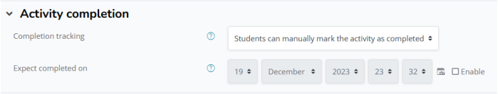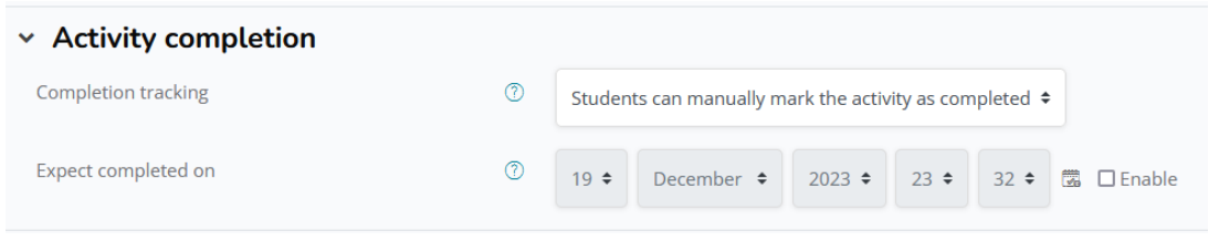 Default yang diberikan moodle adalah peserta dapat menentukan/menandai bahwa mereka sudah menyelesaikan aktivitas tertentu