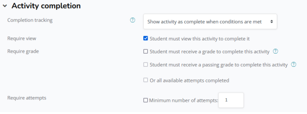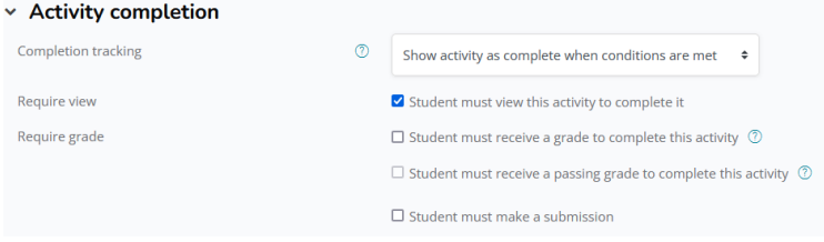 a. Jika peserta hanya melihat activity saja sudah dinyatakan memenuhi completion , menyelesaikan maka lakukan setting: