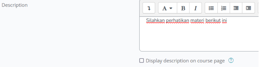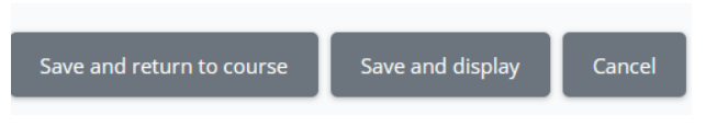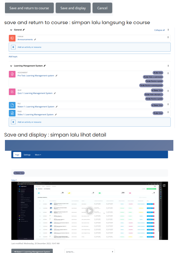 save and return to course : simpan lalu langsung ke course Save and display : simpan lalu lihat detail