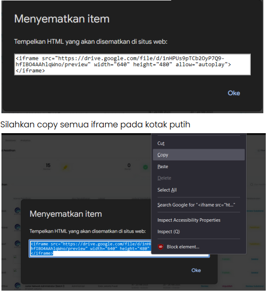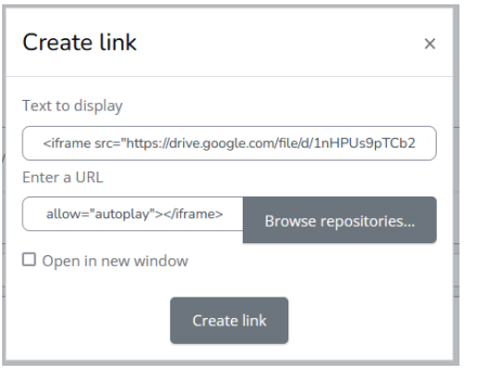 22. Paste iFrame Embed dari Gdrive pada enter a URL