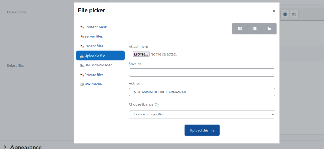 13. Upload file atau video yang akan di embed ke dalam page LMS