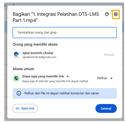 16. Klik Setelan untuk melakukan pembatasan/larangan file didownload/mematikan izin download
