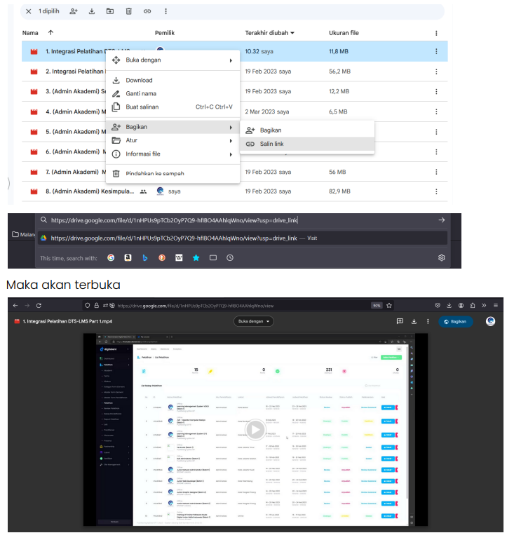 14. Pilih file/video dan klik kanan mouse > Bagikan > Bagikan