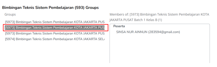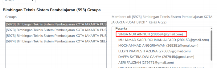 iii. silahkan cari grup A pelatihan anda