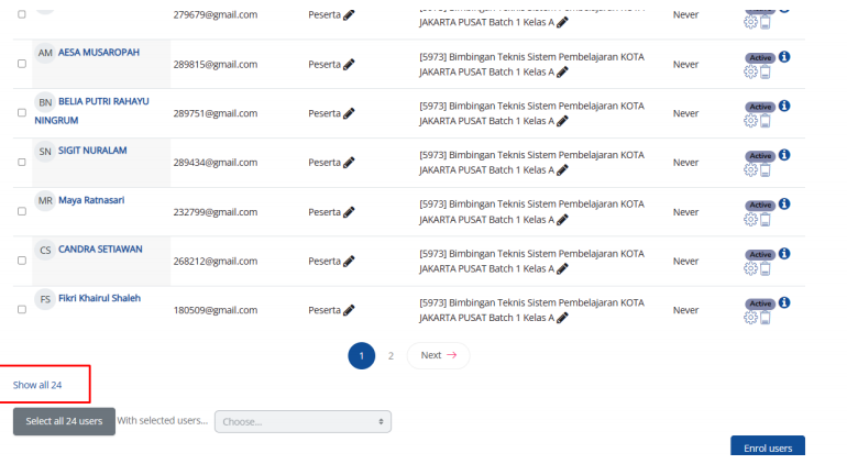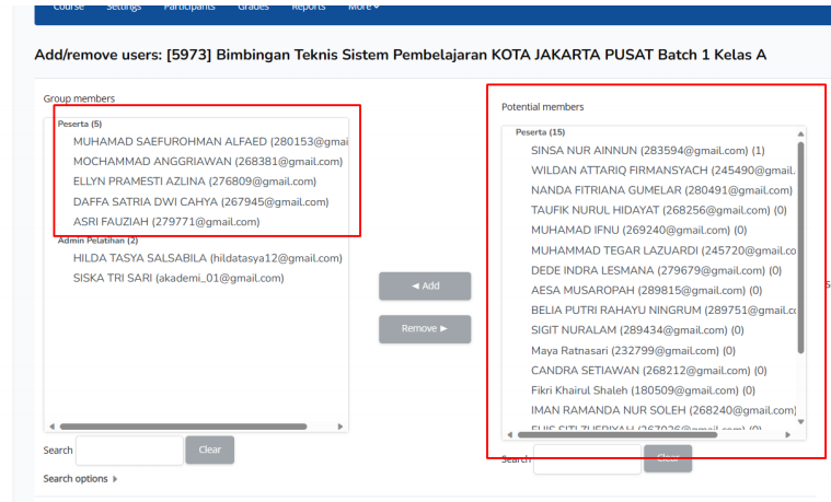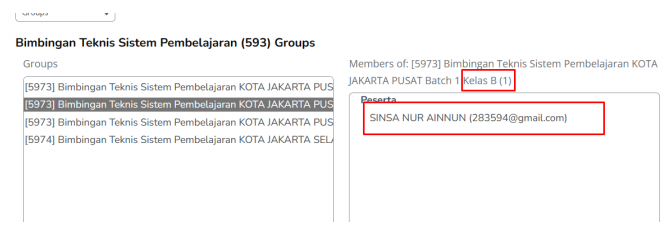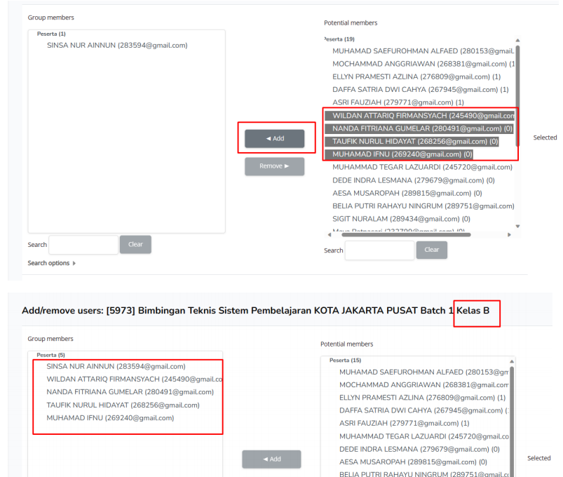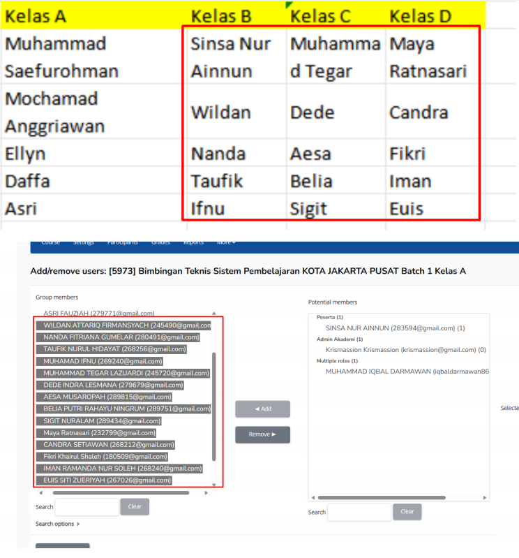 Peserta kelas A dan B sudah dimasukkan menggunakan 2 cara di moodle,