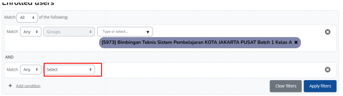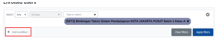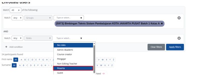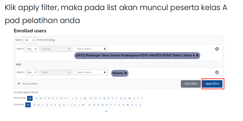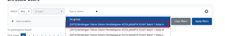vi. Klik apply filter, maka pada list akan muncul peserta kelas A