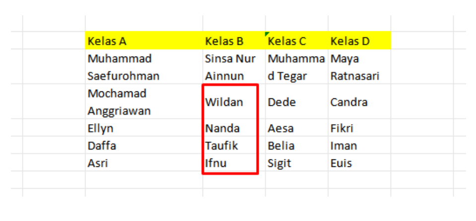catatan yaitu data peserta kelas A, data peserta kelas B, data