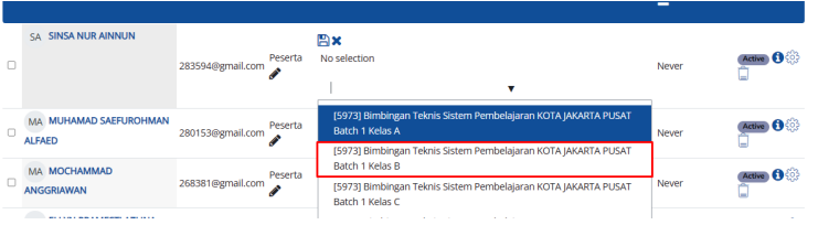 Ketika peserta anda sudah masuk dan kelas sudah dikelola lebih dari satu kelas