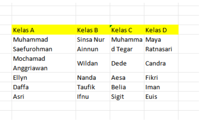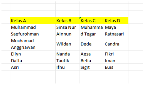 peserta kelas C, dan data peserta kelas D