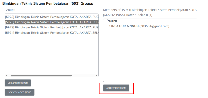 ii. pada menu ini terdapat banyak grup yang menggunakan course terkait