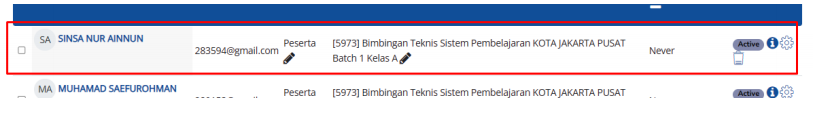 iv. jika sudah, maka disana terdapat peserta pelatihan anda.