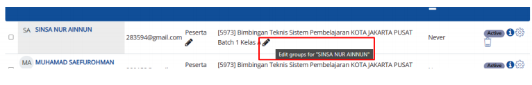 Pindah Peserta, pengajar, admin pelatihan