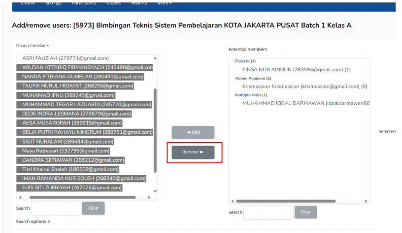 xi. lalu kemudian klik remove untuk mengeluarkan dari kelas A