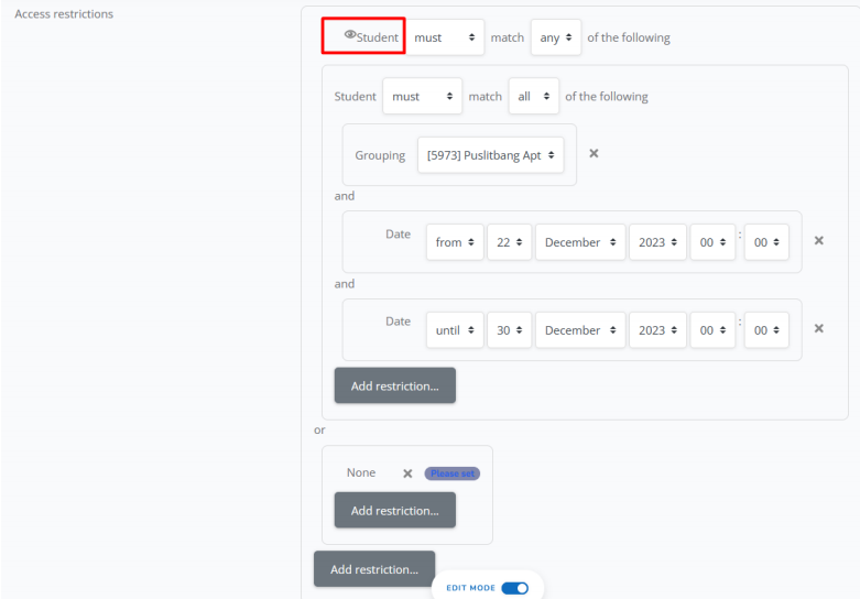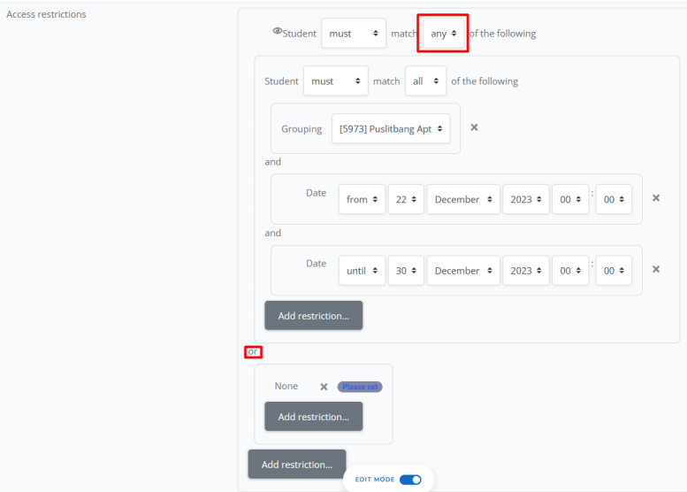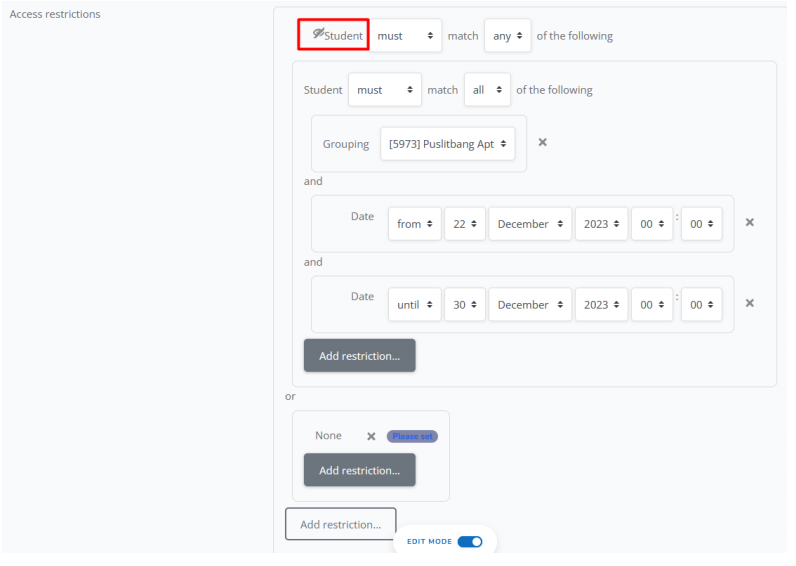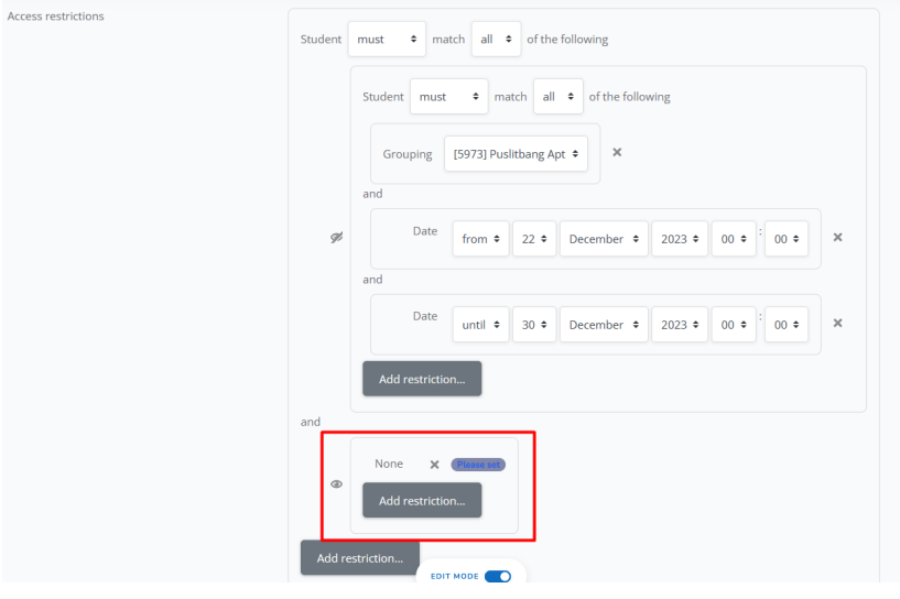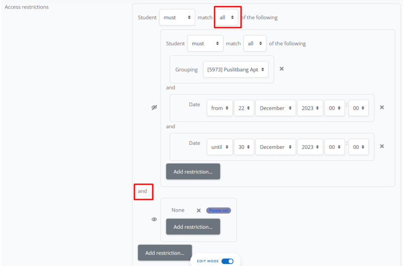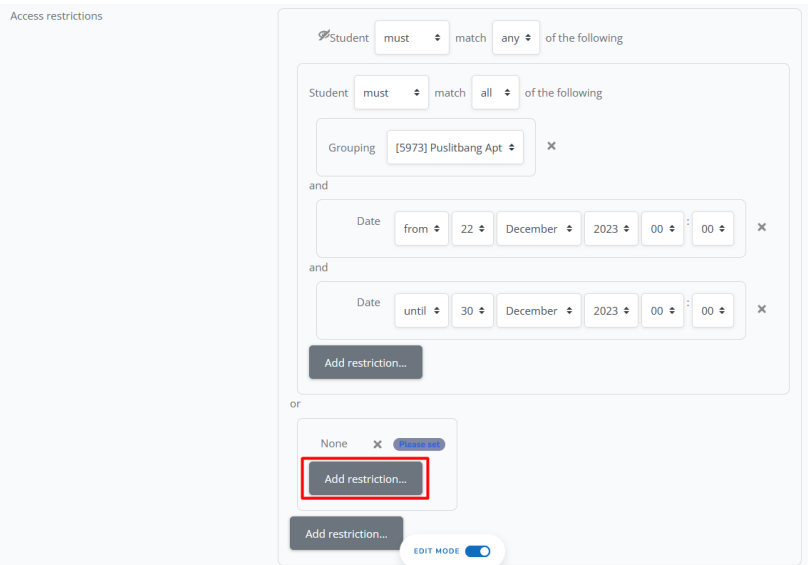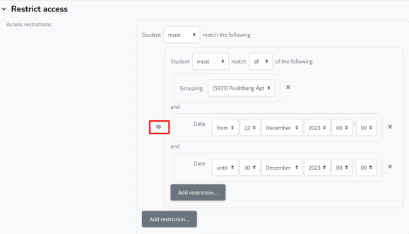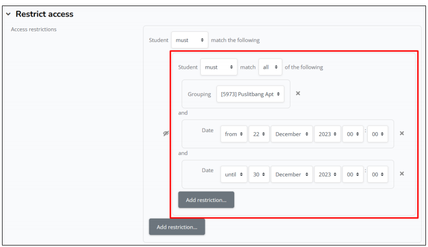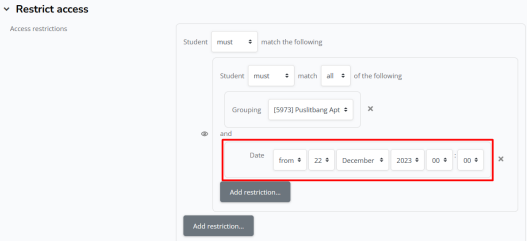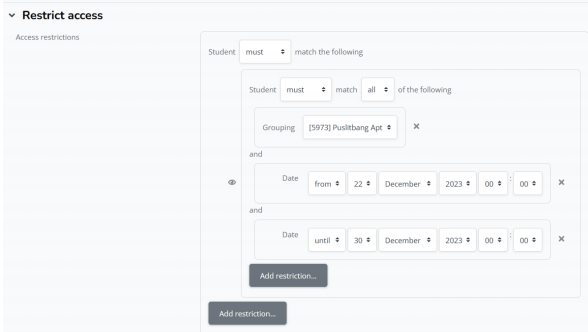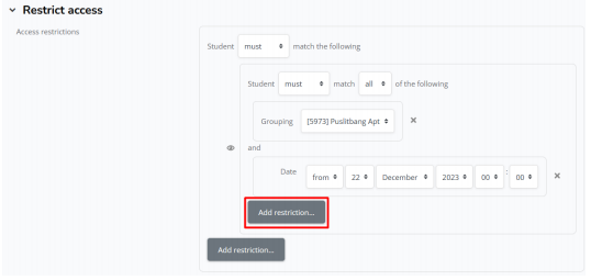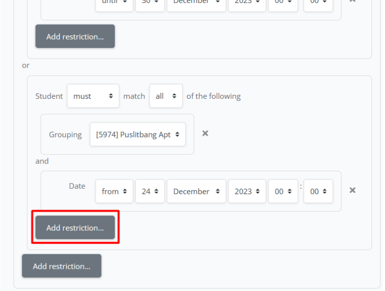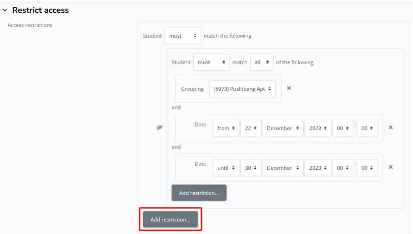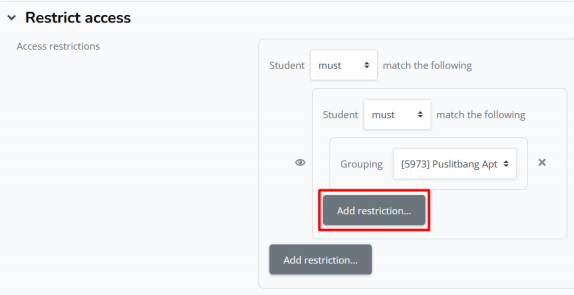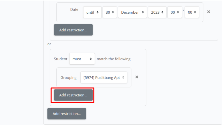 h. Jika sudah memilih grup, silahkan klik add restriction lagi X