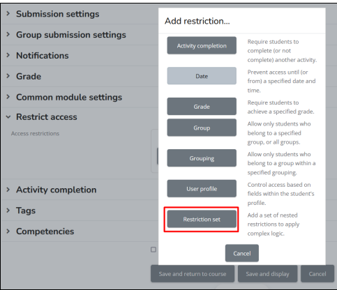 restriksi pada set restriction miliknya admin pelatihan lainc. Klik Restriction Set