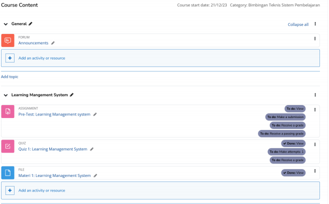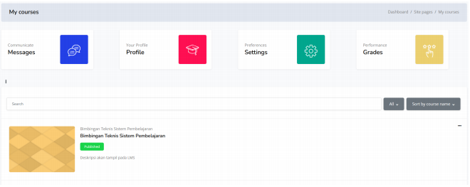 2. Akan tampil menu course seperti berikut, halaman ini akan menampilkan
