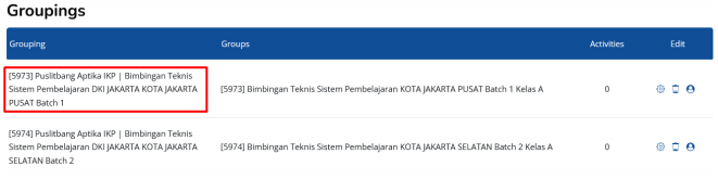 g. Klik Grouping untuk memilih pelatihan anda. silahkan cari pelatihan