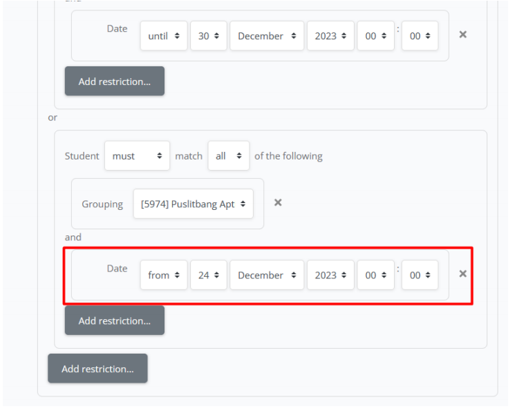 i. Jika sudah mengatur jadwal mulai, silahkan klik add restriction lagi