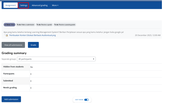 melakukan restriksi akses pada assignment post-test: Learning