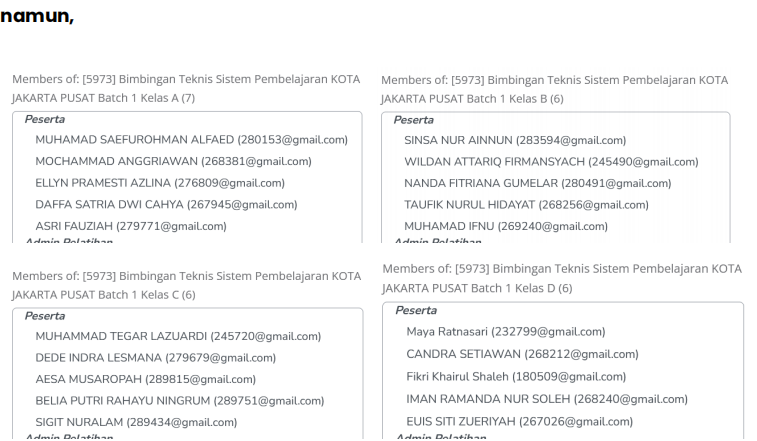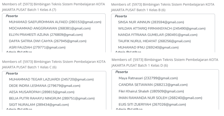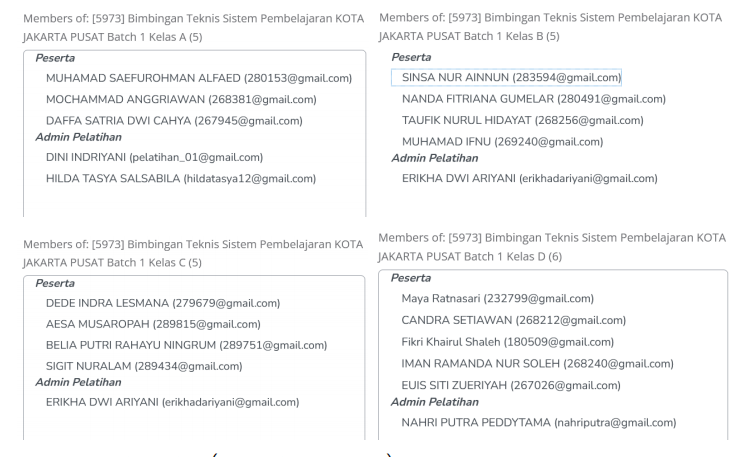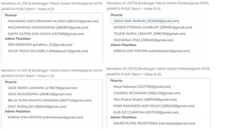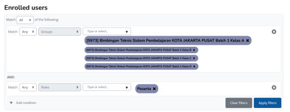 Gunakan filter grup (select semua grup) dan role (peserta) pada menu participant
