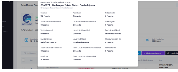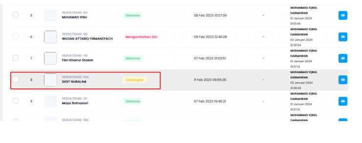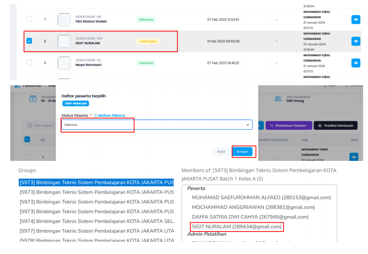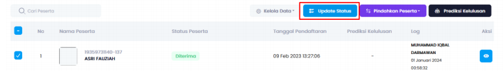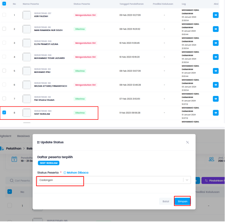 4. Admin melakukan update status peserta pada rekap pendaftaran dari
