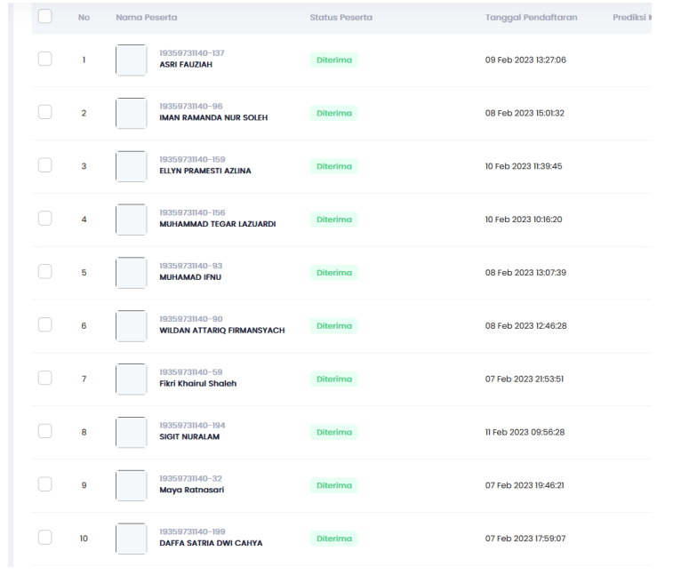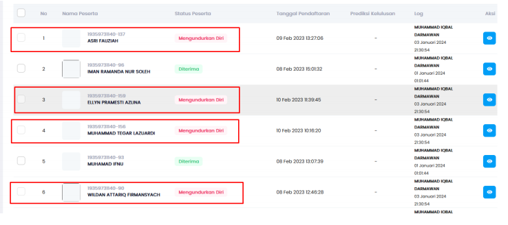 1. Admin melakukan pengecekan nama peserta yang akan dikeluarkan pada