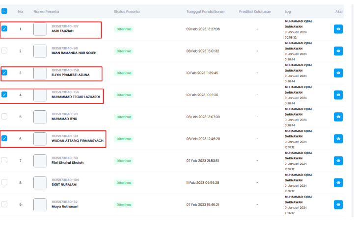 2. Admin membuka rekap pendaftaran dan melakukan bulk peserta yang akan