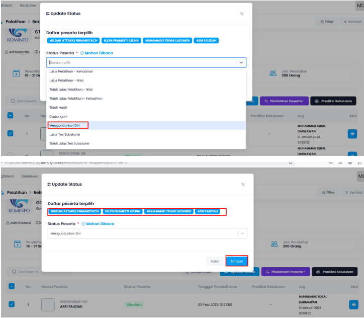 Anda wajib memastikan bahwa peserta yang diubah statusnya ke status yang